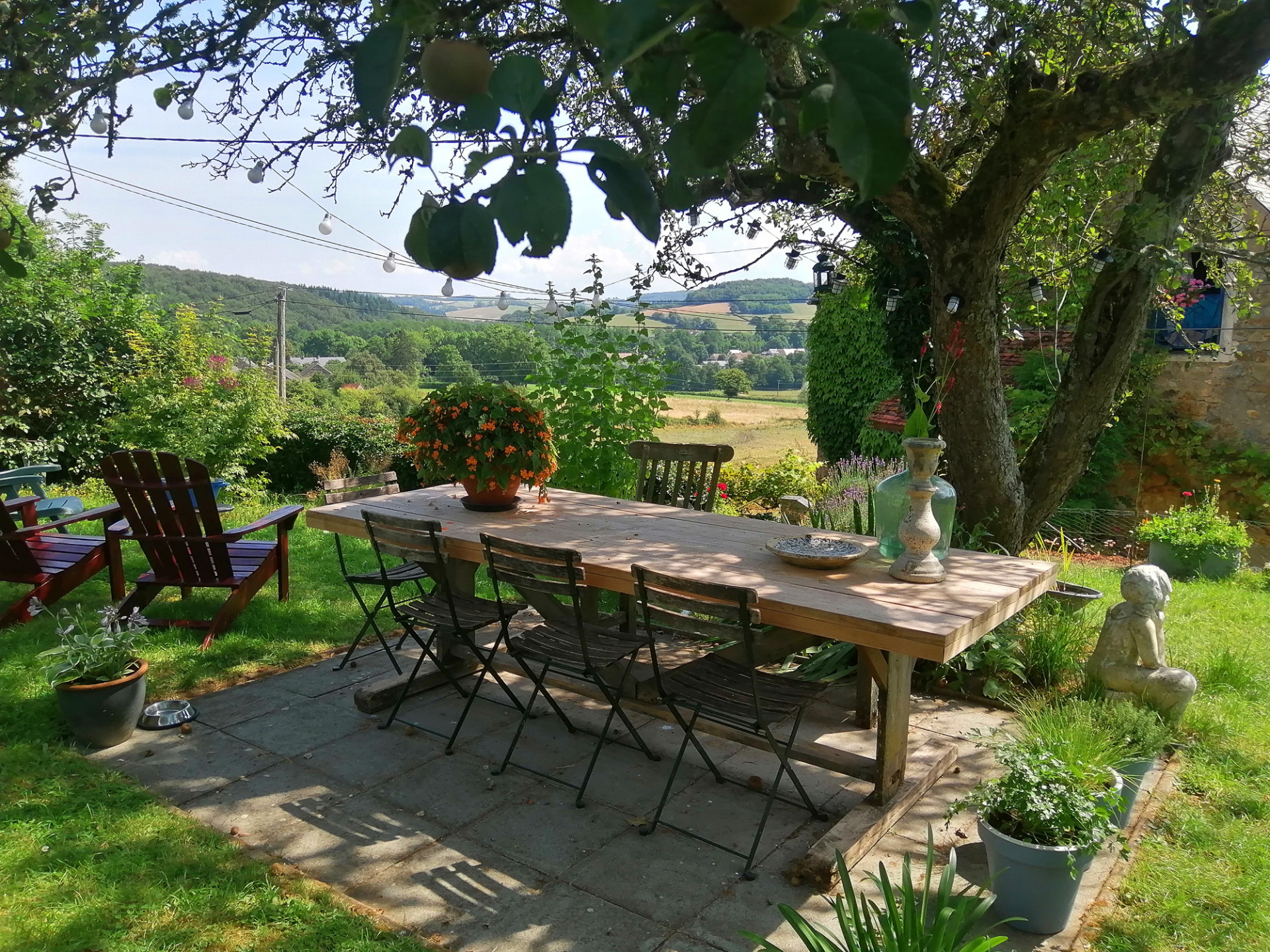 Het huis ligt aan het einde van een klein gehucht, aan de rand van het Parc Naturel Régional du Morvan, een natuurgebied in Midden-Frankrijk. Vanuit het huis en de tuin heb je uitzicht op de heuvels, de bossen, de weilanden en de kleine dorpjes van de Morvan.